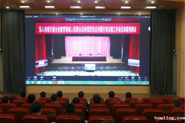 4月28日上午,江苏省政府召开“深入持续开展全省教育领域人民群众反映强烈突出问题专项治理工作动员部署”视频会议。我校全体校领导、中层干部同步收看了会议。