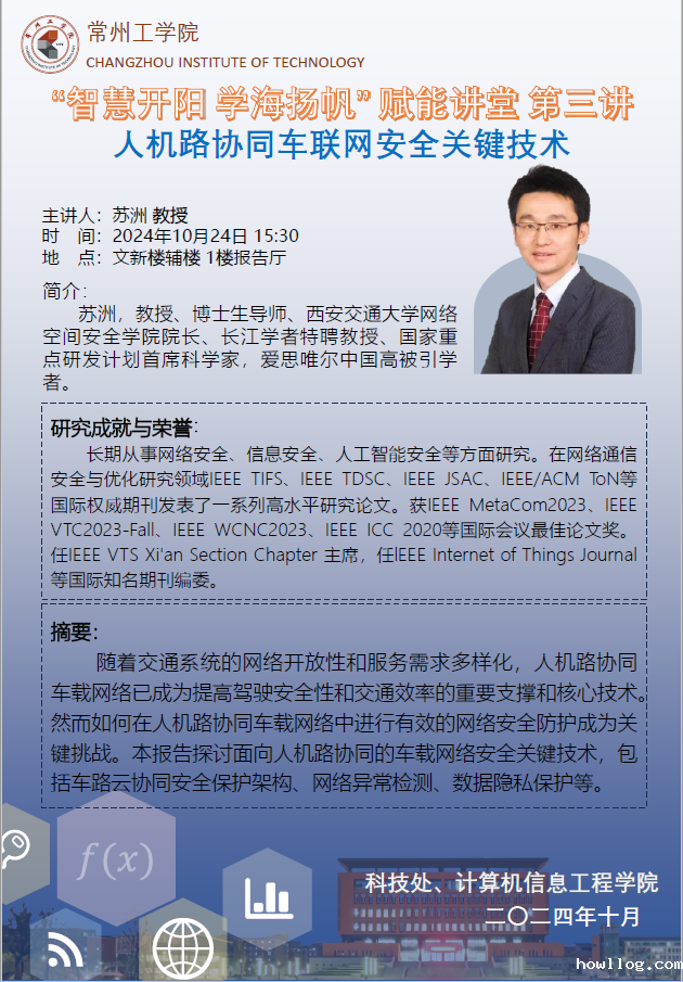 10月24日|学术讲座:人机路协同车联网安全关键技术
