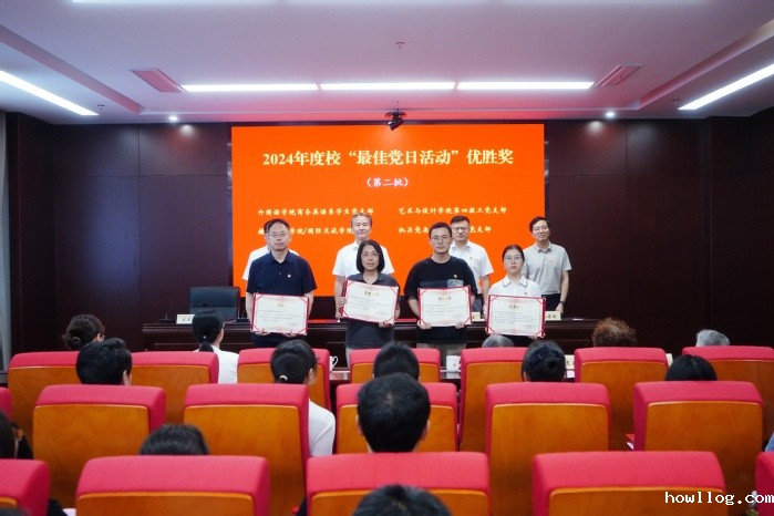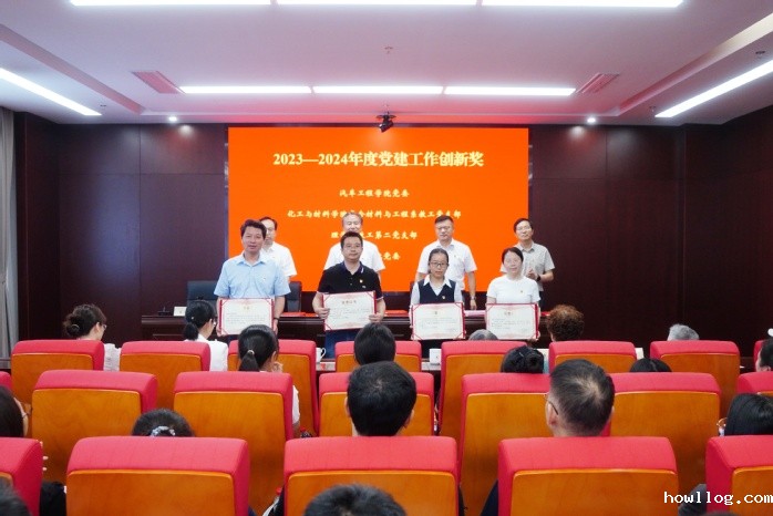 王传金宣读学校2023-2024年度党建工作创新奖和2024年度最佳党日活动优胜奖表彰决定。校领导给获奖单位代表颁奖。
