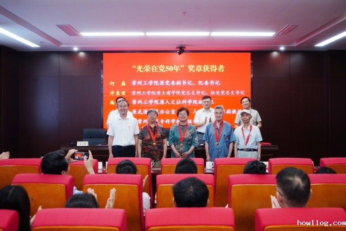 随后,汤正华为何磊、许惠君、谈云雷、戴永清等颁发“光荣在党50年”纪念章。
