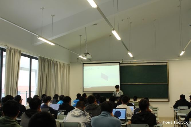 活动开始,首先由夏贤羽同学对大家进行制图知识的讲解,并配合solidworks软件的草图命令,详细的向大家介绍了如何绘制二维平面图。在大家对软件的应用有所了解后,就到了同学们自己动手绘制的时间了。在这期间,社团干部走下讲台,一对一亲身教学,为同学们答疑解惑,耐心的指正同学们的问题所在。最后在同学们的努力和社团干部的帮助下,大家都熟练的掌握了本次活动所教授的内容。