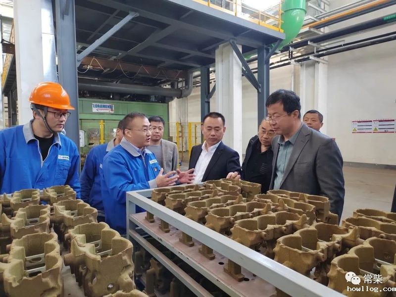 在参观过程中,公司领导向唐明贵副主席一行介绍了常柴的历史沿革、产品发展、工业园建设等情况,对公司近年来研发的国四柴油机、轻型发动机等新产品的特点、优势和配套情况进行了详细地介绍。在常柴机械单缸机基地,公司领导向唐明贵副主席一行介绍了目前单缸机的产品构成、经营状况和配套前景等。在常柴机械铸造基地制芯工段,公司领导介绍了整个制芯过程以及制作完成的砂芯等;在造型工段,唐明贵副主席饶有兴趣地观看KW造型机工作流程,对公司智能化的装备和精细化的工艺流程表示肯定。