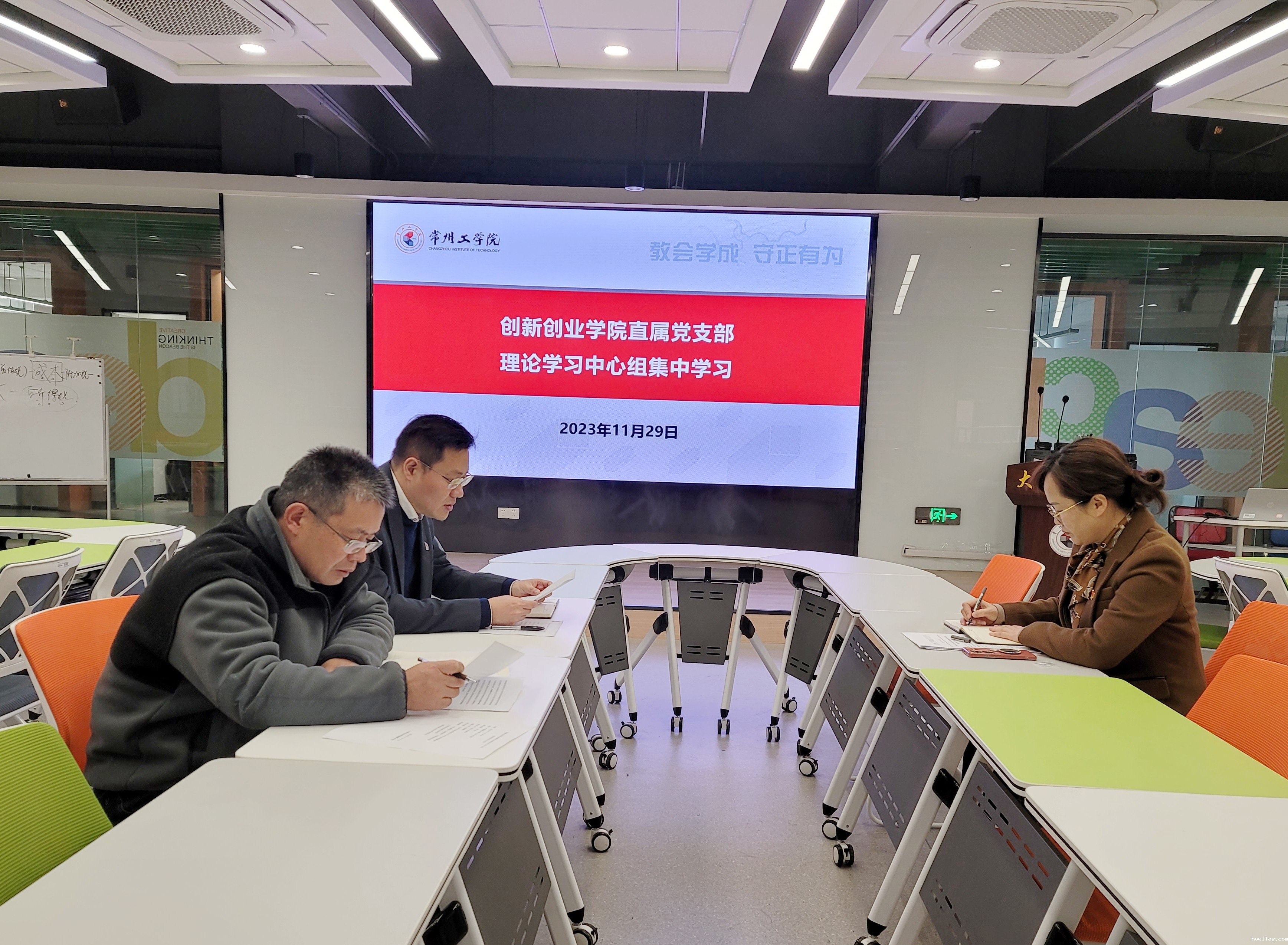 11月29日,创新创业学院直属党支部理论学习中心组开展11月份集中学习研讨,校党委常委、党委组织部部长邹一琴作巡学指导。会议由直属党支部副书记张弘主持。