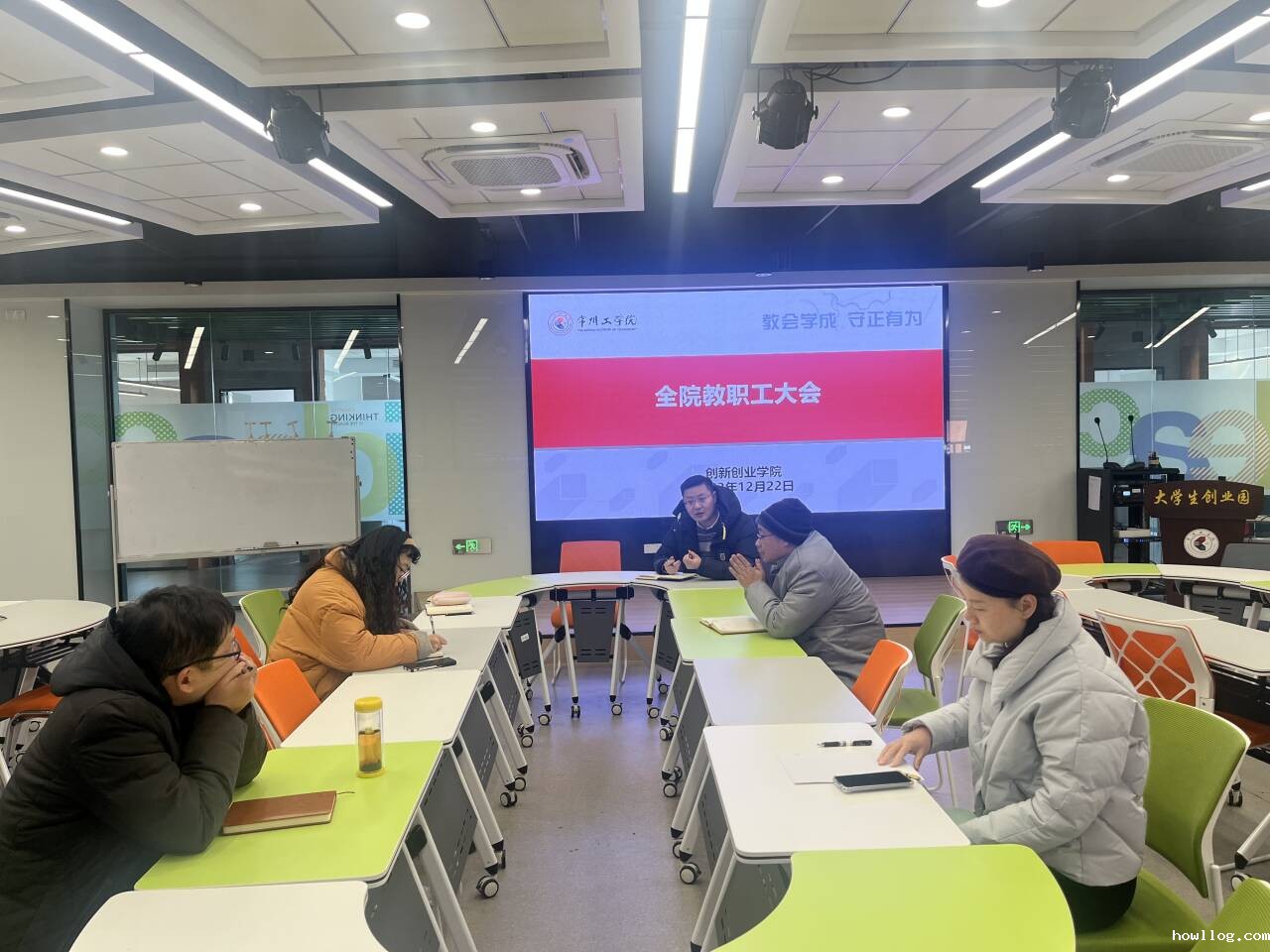 为深入学习贯彻党的二十大精神,坚持以习近平新时代中国特色社会主义思想为指导,进一步发挥党建引领作用,推动各项工作高质量发展,2023年12月22日,创新创业学院直属党支部召开2023年度基层党组织书记述职述廉评议会,全体党员参会。