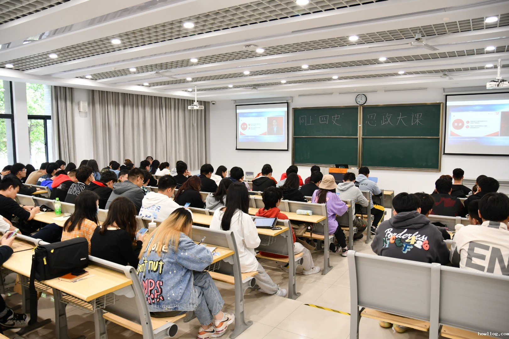 本次思政大课的主题是“同上党史思政大课”,三位老师从中国共产党的成立过程,到在中国共产党的领导下我国所发生的翻天覆地的变化,再到新中国成立以来一个个宝贵的精神向同学们娓娓道来。从南湖上的那艘红船,再到国共第一次合作,再到古田会议、遵义会议,再到抗日胜利和夺取全国政权,再到建立新中国,建设社会主义,再到改革开放,建设中国特色社会主义……历史证明了中国共产党为什么“能”?同学们深刻感受到了共产党人的初心和使命。