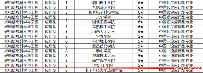 近日,由全国第三方大学评价机构艾瑞深校友会网(.Cuaa.Net)独家撰写、科学出版社出版发行的《2021校友会中国大学排名——高考志愿填报指南》最新发布。在2021校友会中国一流专业排名(应用型)中,光电工程学院3个专业榜上有名。测控技术与仪器专业被认定为中国顶尖应用型专业,获评6★,排名全国第一。光电信息科学与工程专业被认定为中国一流应用型专业,获评5★,位列第8。新能源科学与工程专业被认定为中国高水平应用型专业,获评4★,位列第6。