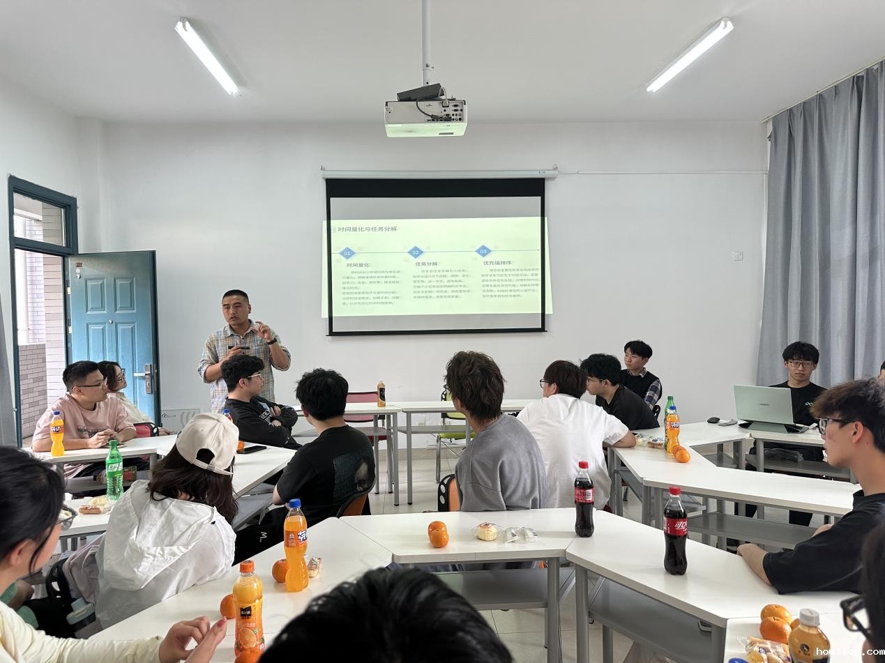 获江苏大学拟录取为硕士研究生、21测控二团支书李萌同学,从复习计划制定、学科重点梳理、心态调整等方面分享了考研备考、复试、面试经验。第二届全国大学生职业规划大赛江苏赛区暨江苏省第十九届大学生职业规划大赛银奖获得者、22能源二班朱佩韦同学,结合职业生涯规划,交流了面对挑战、突破瓶颈的思考与收获,分享了不断成长的经验与感悟。