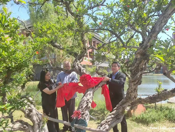 站在捐赠的百岁石榴树前,张兵颁发捐赠证书。金小虎、杨静玉、谢金楼共同为古树揭铭牌,树牌上铭刻着“富贵必从勤苦得,男儿须读五车书”的校友寄语,他们以此激励伟德国际1949官网后学立志立信、奋发有为。