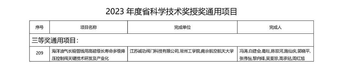 近日,全省科技大会暨全省科学技术奖励大会在南京召开,大会表彰了2023年度江苏省科学技术奖。我院白建会博士与江苏诚功阀门科技有限公司、南京航空航天大学联合完成的项目“海洋油气长输管线用高磅级长寿命多级降压控制阀关键技术研发及产业化”获2023年度江苏省科学技术奖三等奖。
