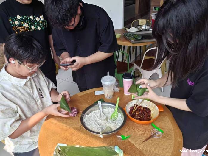 菁园餐厅、桃蹊二楼餐厅组织师生包粽子。现场,食堂工作人员早早准备好了各种食材,热情地向师生们传授包粽子的技巧,从粽叶的折叠、糯米的装填到最后的捆绑,每一个步骤都讲解得细致入微。师生们围坐在一起,尽管大家的手法参差不齐,包出的粽子形状各异,但这丝毫不影响大家的热情,反而让活动增添了许多趣味。