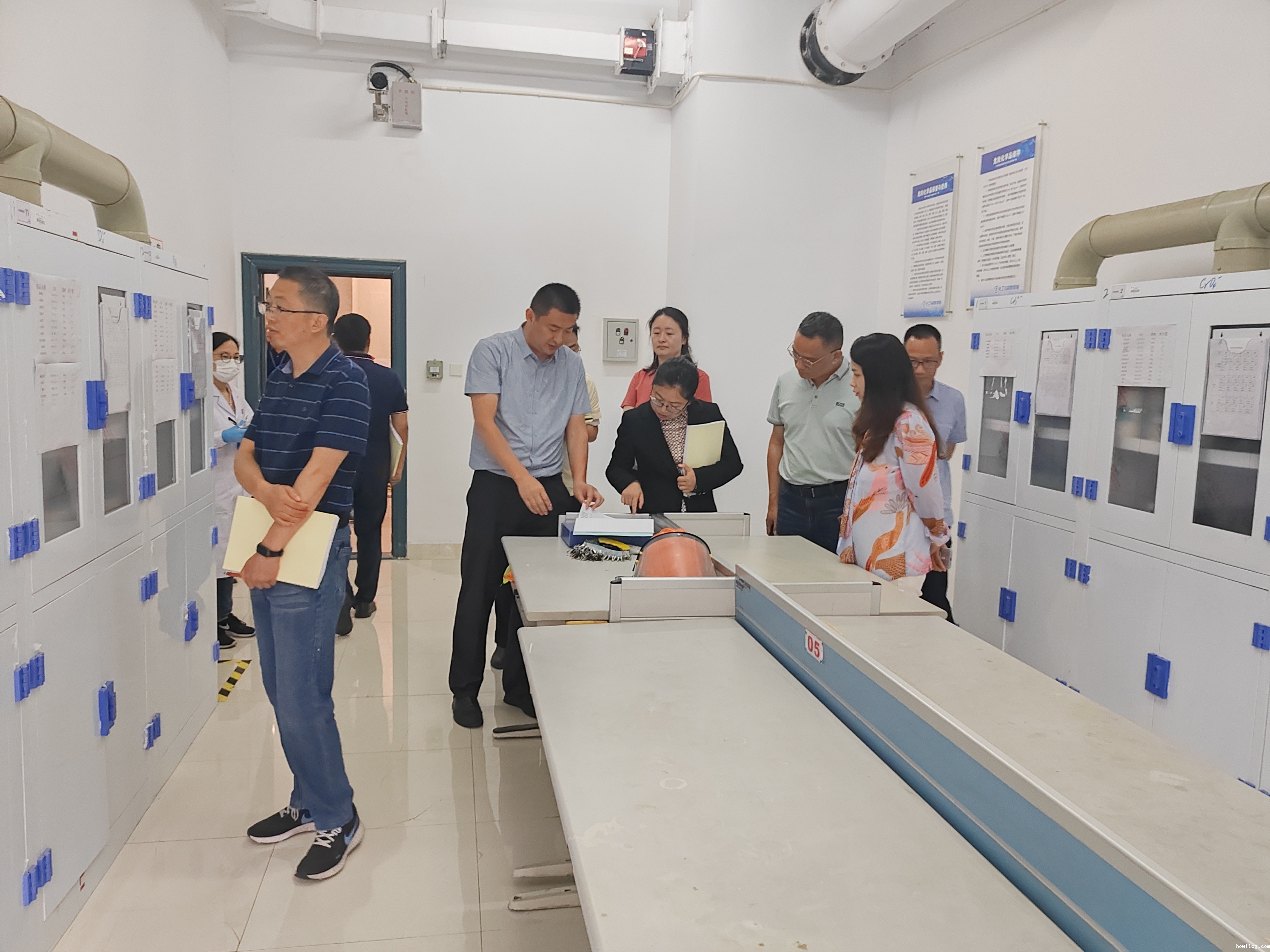 随后,专家组调阅了全校实验室安全管理工作资料和安全台帐,就一些具体问题进行了深入细致的检查和当面询问。现场检查环节,专家组首先检查了化工与材料学院的危废品暂存室,化学试剂暂存室,易制爆、易制毒试剂暂存室以及各科研实验室,专家组对危废品处置规范、实验试剂体量、试剂使用台账、仪器管理规范等提出问题,并介绍了相关规范要求以及当前标准做法;随后专家组检查了光电工程学院、土木与建筑工程学院和航空与机械工程学院/飞行学院的部分涉化实验室,仔细查看了各类设备的安全防护措施,对特种设备操作技能培训情况进行了询问。