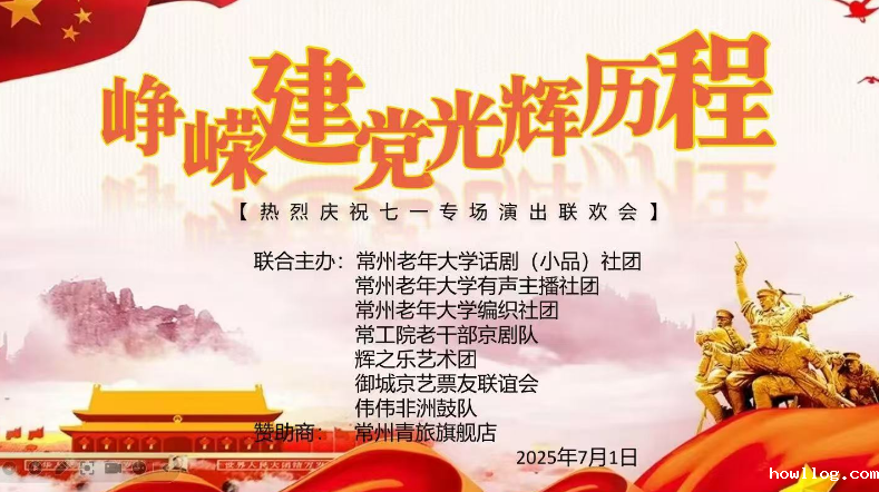 为庆祝中国共产党成立104周年,7月1日,常州老年大学等单位联合举办了“峥嵘建党光辉历程”七一专场演出联欢会。我校老干部文艺队登上舞台,以两个精彩节目赢得现场热烈反响,展现离退休老党员的爱党情怀与精神风貌。