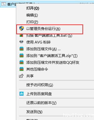 3、右击激活客户端程序程序,选择“以管理员身份运行”,如图1所示: