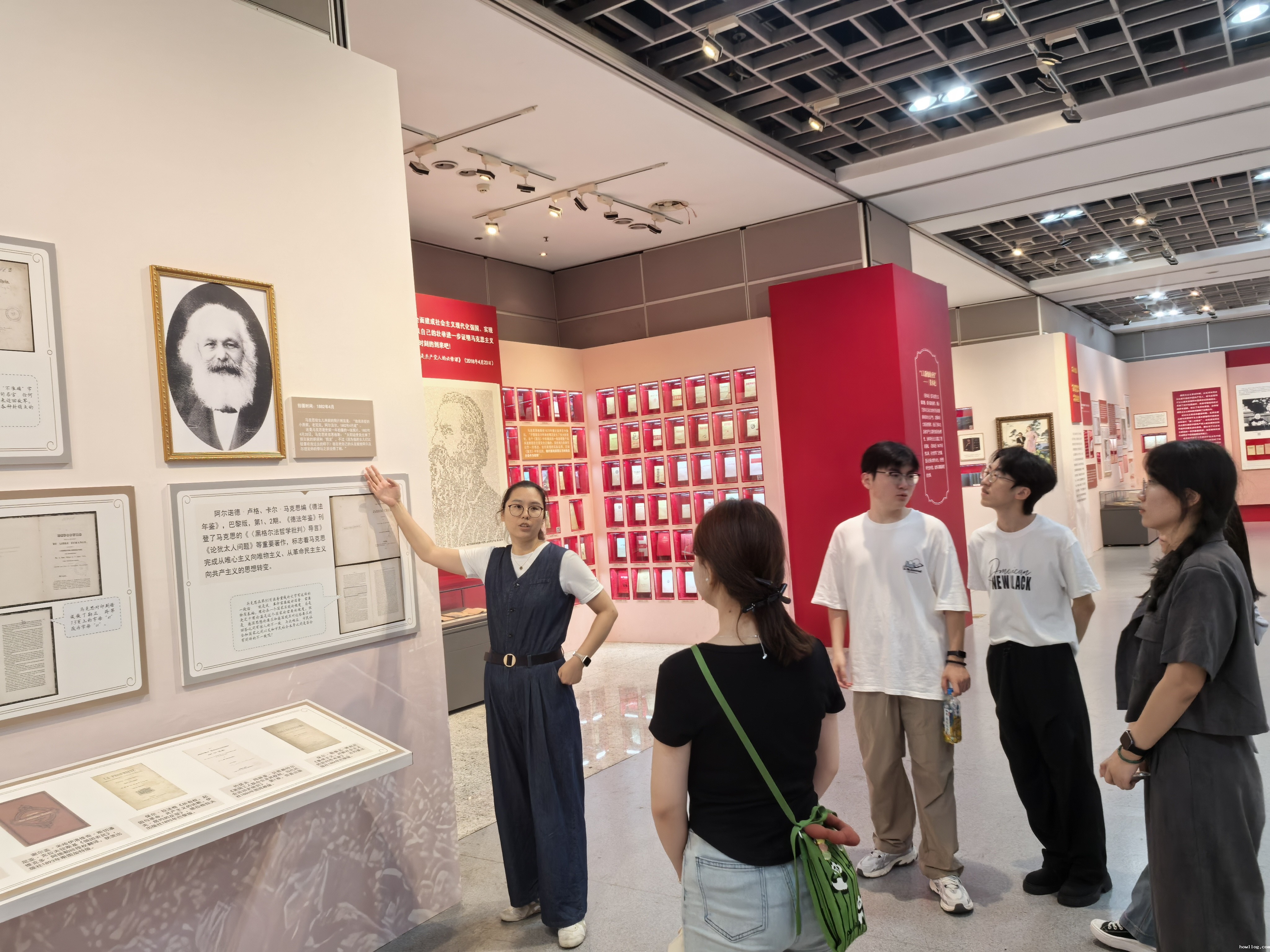 展览现场,大家边看边思、边学边议,在珍贵的文献前频频驻足、仔细品读。透过泛黄的书页、斑驳的字迹、珍贵的早期译本,近距离感知马克思主义真理在中国传播、生根、发展的光辉历程。