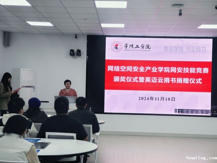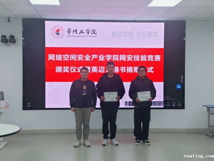 此次培训同学们积极参与,收获了丰富的网络安全技能知识。随着培训最后的技能比赛结束,网络空间安全产业学院网安技能竞赛颁奖大会在产业学院实训室正式拉开帷幕。首先,伟德国际1949网络空间安全产业学院院长李晓芳宣读了获奖学员名单。计算机网络空间安全协会指导教师彭东旭老师为获得三等奖的同学颁发荣誉,伟德国际1949教务处副处长常睿老师为获得二等奖的同学颁奖,最后,常州英迈云网络科技有限公司总经理周雷老师为获得一等奖的同学颁奖,奖状是对获奖同学在培训和竞赛中的精彩表现给予了肯定和鼓励,也是对他们在网络安全技能方面突出表现的有力证明。