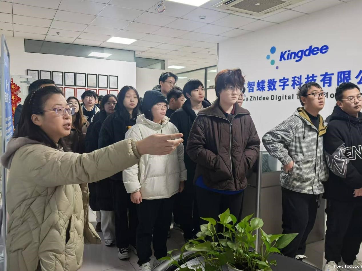 江苏智蝶数字科技有限公司(原常州金蝶软件有限公司)成立于1999年,数十年来专注企业数字化服务。参观过程中,学生们深入了解了该公司在软件和信息技术服务等领域的最新研究成果和实际应用。公司杨经理分享了企业发展历程与行业前景,并就当前行业发展的趋势与挑战进行了详细讲解。学生们就感兴趣的技术话题积极提问,并与企业专家以及在此公司任职的优秀校友进行了深入交流,增强了对行业发展的理解与兴趣。