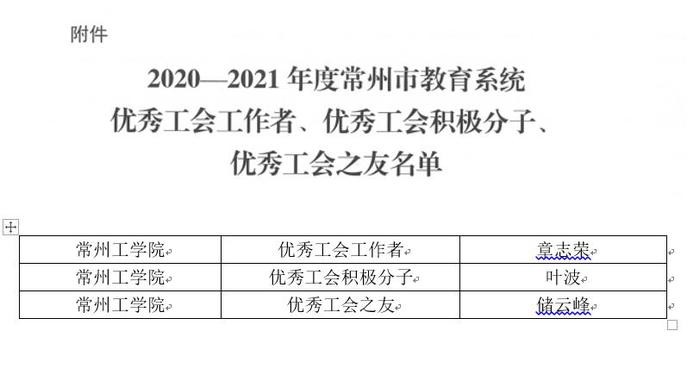 我校三人荣获2020—2021年度常州市教育系统工会工作 “优秀”称号