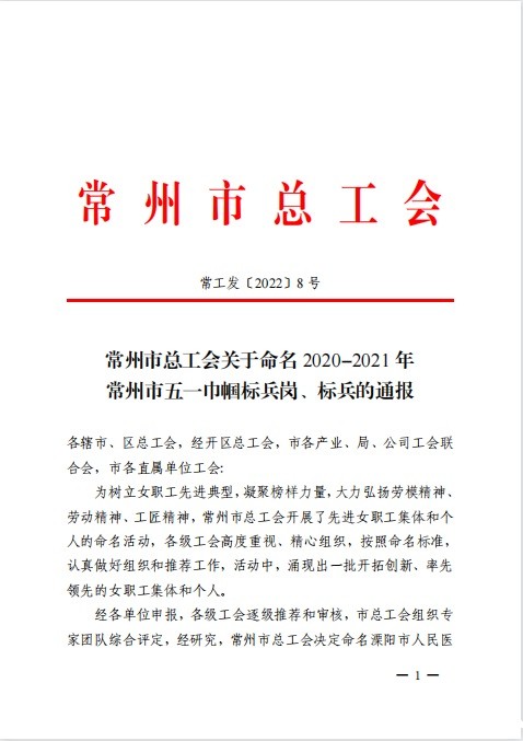 我校经济与管理学院管理工程系荣膺“2020-2021年常州市五一巾帼标兵岗”称号