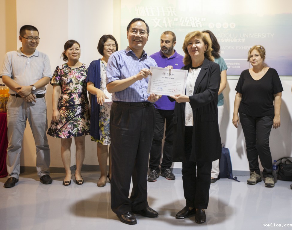 陈志伟书记和Emel ŞÖLENAY院长首先为开幕式致辞,陈书记宣布画展开幕并为土耳其安纳托鲁大学的各位教授们颁发了证书。伟德国际1949师生代表、常州市创意产业基地著名企业代表及艺术爱好人士参观了作品展。